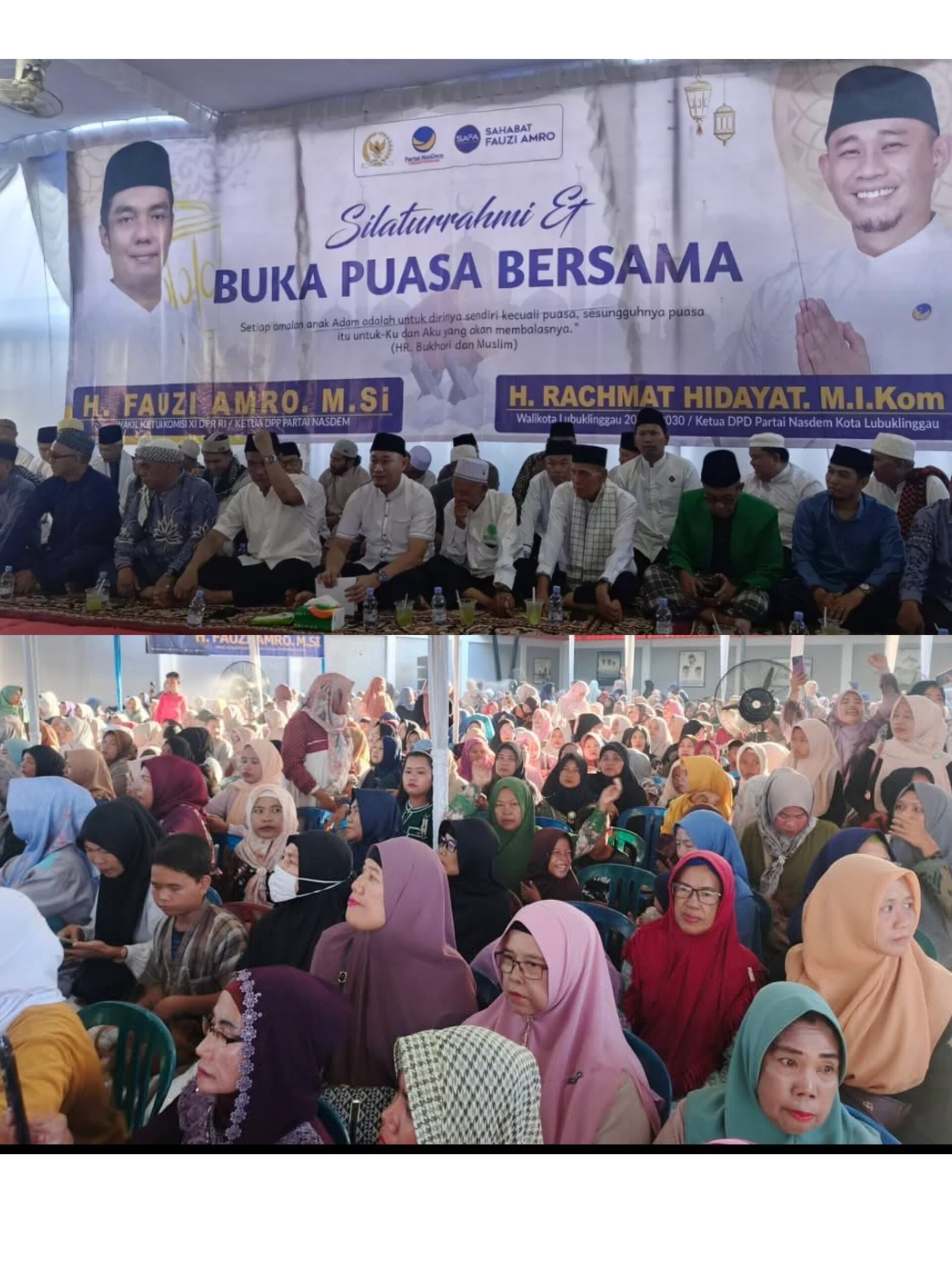Sementara itu, kegiatan tersebut juga turut dihadiri oleh Ketua DPD Partai NasDem Kota Lubuklinggau yang juga Wali Kota Lubuklinggau, H. Rachmat Hidayat atau yang akrab disapa Yopi Karim. Hadir pula para alim ulama, tokoh masyarakat, serta ribuan warga yang semakin menambah semarak dan kekhidmatan acara.